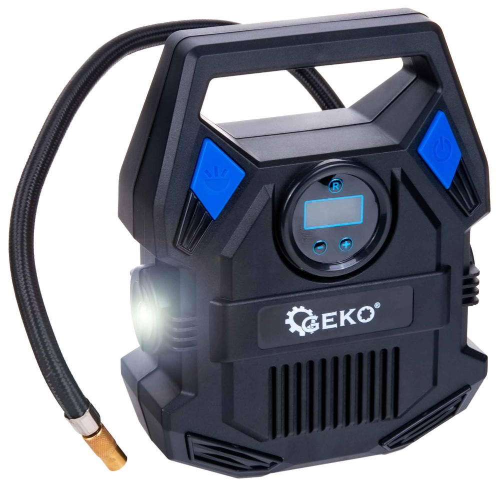 Autokompresor GEKO 12V 84W je spoľahlivé a praktické zariadenie, ktoré sa osvedčí pri každej ceste a každodennom používaní. Vďaka svojej kompaktnej konštrukcii a napájaniu zo zásuvky cigaretového zapaľovača umožňuje rýchle a pohodlné dofúkanie pneumatík, lôpt alebo matracov, bez nutnosti návštevy čerpacej stanice.Vstavaný digitálny tlakomer umožňuje presné ovládanie tlaku a funkcia automatického vypnutia zaisťuje bezpečné používanie. Dodatočné LED osvetlenie uľahčuje prácu po zotmení, vďaka čomu je tento model nepostrádateľnou súčasťou výbavy každého vodiča.