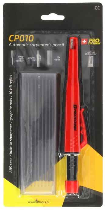 Mechanická tesárska ceruzka PRO+ je ideálna na presné značenie otvorov, čiar a montážnych bodov na rôznych povrchoch – či už v stavebníctve, tesárstve alebo pri rekonštrukčných prácach. Vďaka predĺženému, tenkému hrotu a ovládaniu jednou rukou je vhodná na značenie aj veľmi hlbokých otvorov. Je ideálnou voľbou pre montérov, tesárov, montážnikov a dielenských pracovníkov, ktorí chcú zákazníkom ponúknuť praktický, odolný a všestranný nástroj na značenie. Tento produkt od spoločnosti PRO-TECHNIK je ideálny na profesionálne použitie aj do domácej dielne, pretože umožňuje rýchle a presné značenie na dreve, kove alebo betóne.