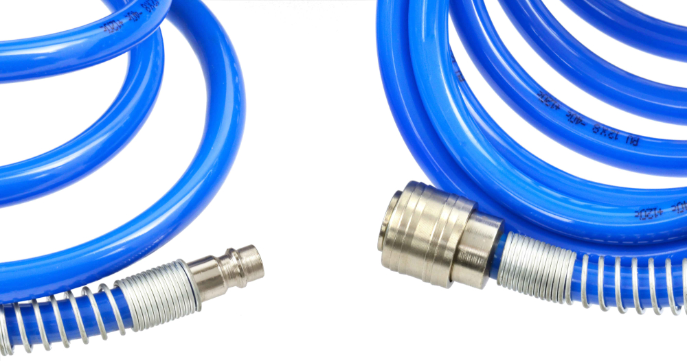 Samonavíjacia polyuretánová pneumatická hadica. Môže sa používať so všetkými vzduchom poháňanými zariadeniami vrátane v dielňach, garážach, továrňach, čerpacích staniciach. Hadica má otočné armatúry na zníženie nadmerného skrútenia. Mäkká polyuretánová povrchová úprava znižuje pravdepodobnosť povrchových škrabancov.Vlastnosti produktu:
