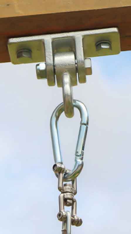 Tento robustný hojdací hák je nevyhnutným doplnkom každého domáceho ihriska. Jeho vnútorné mosadzné puzdro zaisťuje plynulý a tichý chod a eliminuje vŕzganie. Žiarové zinkovanie zaisťuje odolnosť a odolnosť voči poveternostným vplyvom, vďaka čomu je ideálny na dlhodobé vonkajšie použitie. Tento produkt je ideálny pre domáce záhrady aj profesionálne opičie parky.Rozmery: