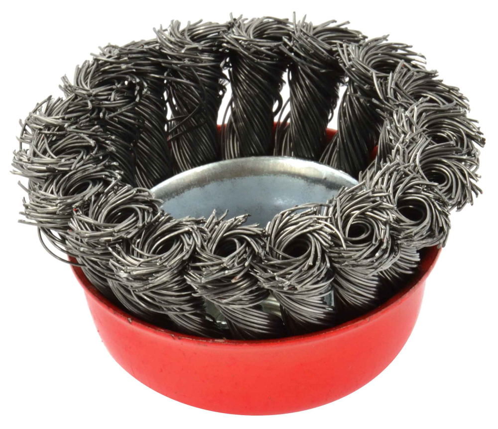 Oceľový hrnčekový kartáč vrkočový 75 mm / 3 "M14. Ideálny na renovačné práce, čistenie kovových povrchov, odstraňovanie starých farieb, lakov, hrdze, otrepov atď.Vlastnosti produktu: