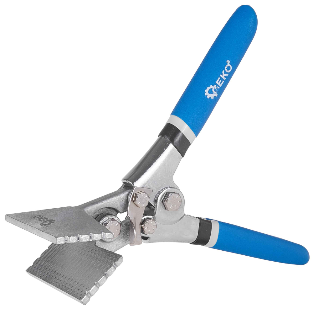 Kliešte na tvarovanie profilov Geko sú solídne a spoľahlivé náradie určené pre profesionálov a domácich majstrov zaoberajúcich sa spracovaním plechu. Vďaka špeciálne navrhnutým čeľustiam s rozmermi 80x35 mm , ktoré majú protišmykové zárezy, nástroj zaisťuje pevné uchopenie a presné tvarovanie plechu. Ergonomické rukoväte s protišmykovou úpravou zaručujú pohodlie pri práci aj pri dlhšom používaní. Kliešte sú ideálne na tvarovanie kovových profilov, ohýbanie hrán alebo dokončovanie plechových prvkov v pokrývači, vzduchotechnike a stavebníctve.Kľúčové vlastnosti produktu: