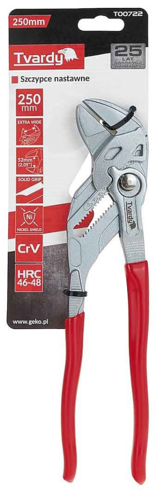 Nastaviteľné kliešte sú nepostrádateľným pomocníkom v dielni, doma aj na stavbe. S nastaviteľným otvorením čeľustí až do 52 mm sú ideálne na manipuláciu s rôznymi skrutkami a maticami, metrických aj imperiálnych veľkostí. Ich pevná konštrukcia zaisťuje spoľahlivosť a komfort používania a použitie vysoko kvalitnej chróm-vanádiovej ocele (CrV) zaručuje mimoriadnu odolnosť.