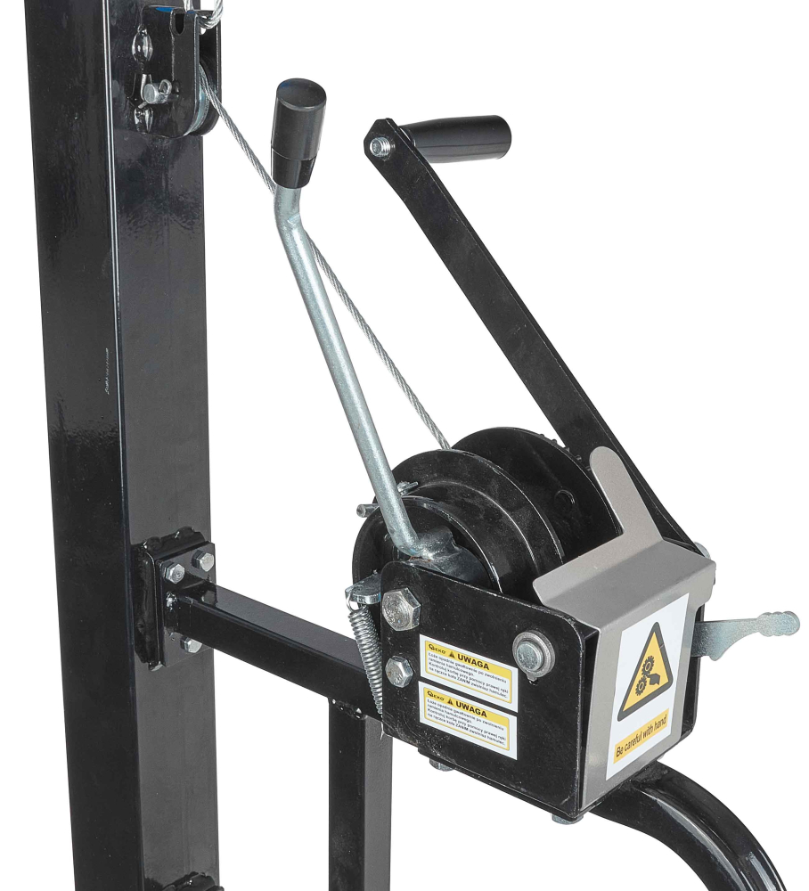 Mechanizmus skladania nôh s račňou – Račňový mechanizmus umožňuje rýchle skladanie a rozkladanie nôh zdviháka, čím sa výrazne skracuje čas na nastavenie a prepravu. Zloženie zdviháka do kompaktnej veľkosti trvá len niekoľko sekúnd, čo je mimoriadne pohodlné pri práci na rôznych miestach.
