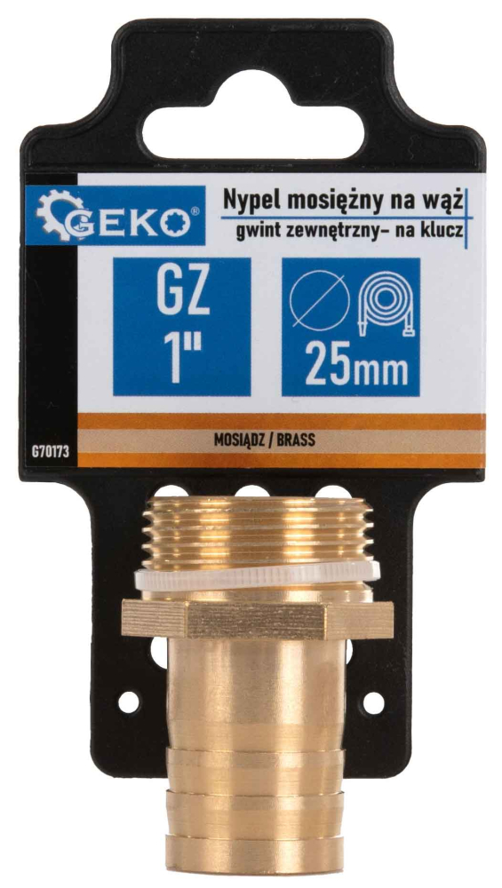 - Mosadzná vsuvka na 25 mm hadicu, vonkajší závit 1", GEKO