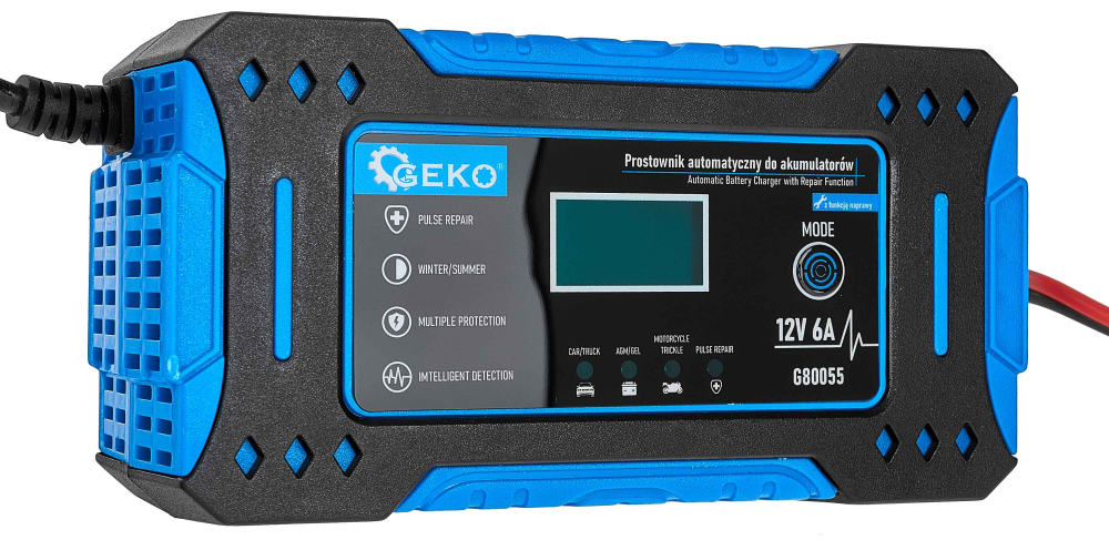 - Nabíjačka autobatérii s funkciou opravy, 230 V, 12V, intenzita prúdu 6A, AGM/GEL, GEKO