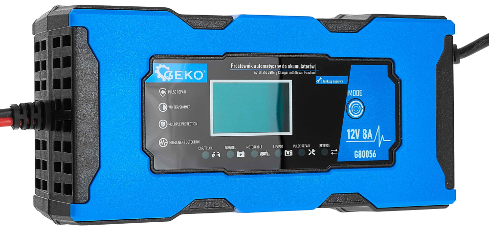 Vďaka funkcii automatickej detekcie teploty (zimný/letný režim) a funkcii pamäte posledného prevádzkového režimu je nabíjačka GEKO G80056 mimoriadne pohodlná a intuitívna na používanie.