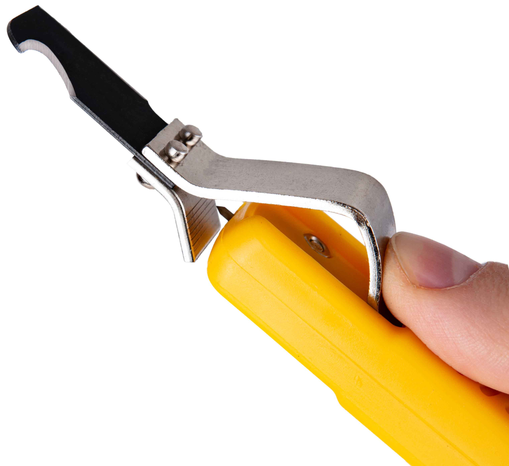 Obojstranná čepeľ umožňuje efektívne odstraňovanie izolácie z vonkajších povrchov aj pri pozdĺžnom rezaní kábla.