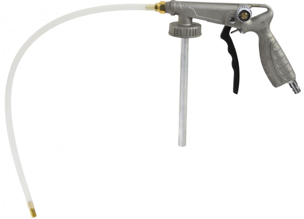 Striekacia pištoľ na ochranné nátery karosérie, údržbu podvozku a uzavreté profily. Pištoľ je naskrutkovaná na štandardnú nádobu (1L a 2L) s antikoróznym činidlom.Plastová sonda umožňuje údržbu ťažko dostupných miest a uzavretých profilov.