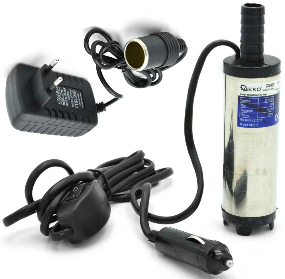 Čerpadlo na čerpanie oleja. Čerpadlo je ponorné a jeho motor je chladený pomocou čerpanej kvapaliny. Je ideálne na použitie pri nákladných automobiloch, traktoroch, lodiach, generátoroch a iných dopravných prostriedkoch.Napätie: 24 V / 230 V