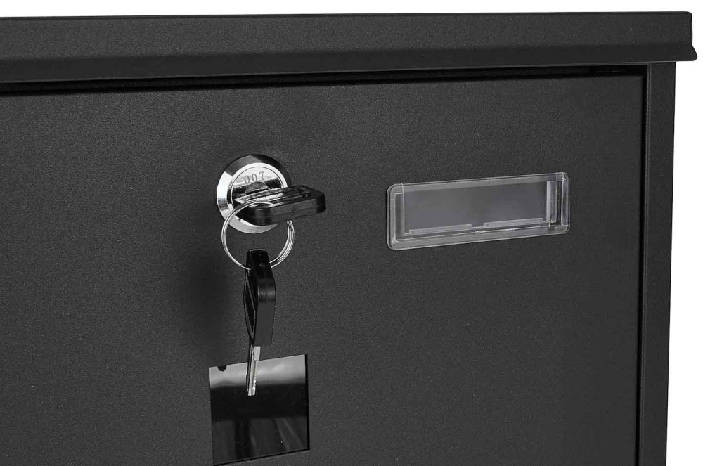 Poštová schránka sa otvára dvierkami uzamykateľnými kľúčom (dva kľúče sú súčasťou balenia), čo zaisťuje bezpečnosť vašej uloženej pošty.