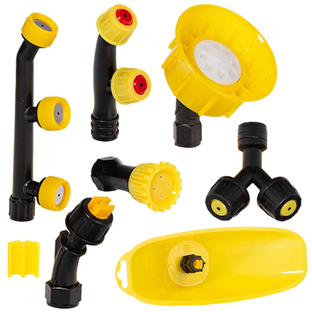 Postrekovač je vybavený 7 rôznymi tryskami pre rôzne aplikácie, čo umožňuje široké spektrum aktivít v záhrade, sade alebo na poli. Ich jednoduchá zameniteľnosť umožňuje užívateľovi rýchlo prispôsobiť postrekovač konkrétnym potrebám.