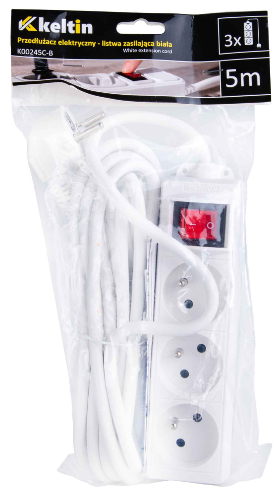 Funkčný 3-zásuvkový predlžovací kábel s uzemnením a vypínačom, ideálny pre každodenné použitie doma aj v kancelárii.Zásuvky zaisťujú bezproblémové pripojenie a odpojenie zariadení bez nadmernej námahy.