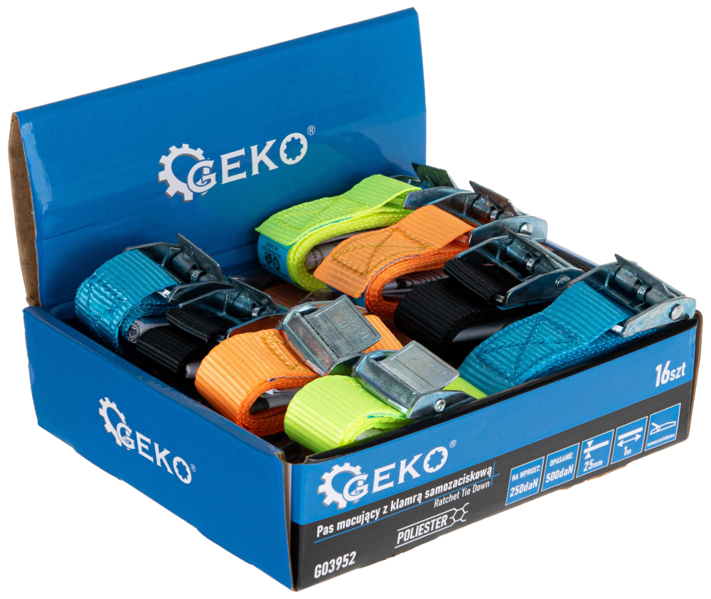 Jednoduché použitie a spoľahlivéJednodielne upínacie popruhy so samosvornou prackou určené pre rýchle a bezpečné zaistenie nákladu pomocou páskovania . Vďaka samosvornej pracke umožňujú rýchle a bezpečné zaistenie prepravovaných predmetov bez nutnosti použitia napínača.