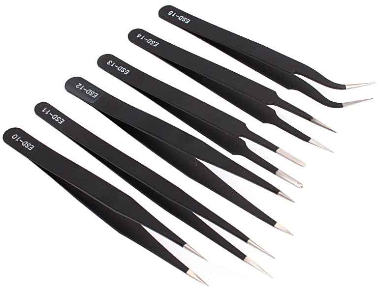 Antistatická pinzeta 12-14cm na vykonávanie presného zdvíhania a presúvania malých prvkov. Ideálne pre použitie v elektronike, šperkoch, kozmeteológii, modelovaní, akváriách, domácnosti a mnohých ďalších oblastiach. Sada obsahuje pinzetu rôznych tvarov a veľkostí pre všestranné použitie. Pinzety majú hrúbku 0,15 mmHlavné vlastnosti:
