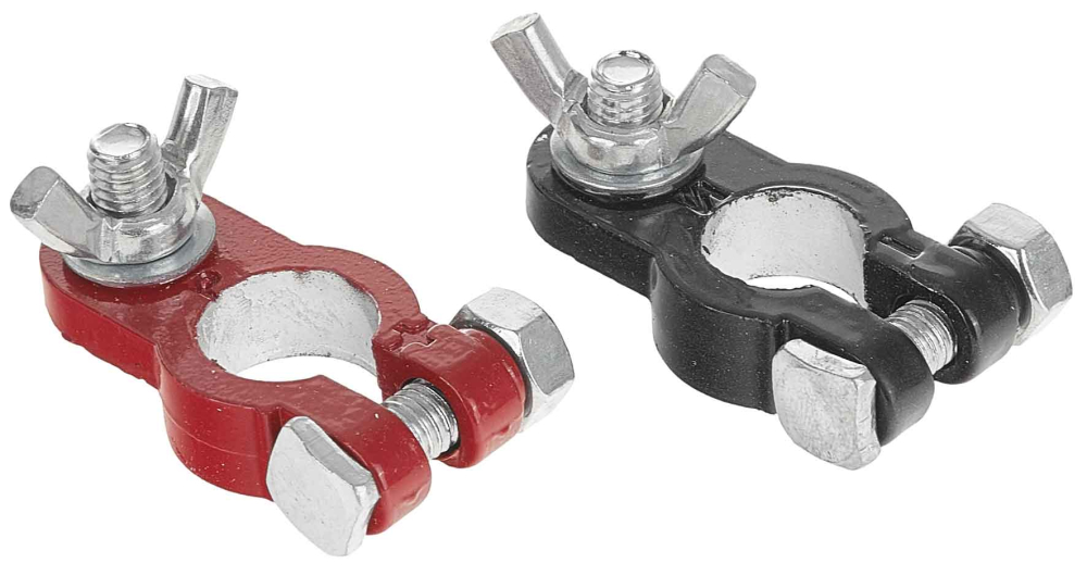 POPISZabezpečte bezproblémové pripojenie batérie vo vašom vozidle pomocou vysokokvalitných svoriek. Ide o spoľahlivú súpravu pozostávajúcu z dvoch svoriek: červená pre kladný pól (+) a čierna pre záporný pól (-) . Perfektná voľba pre 6V aj 12V batérie .