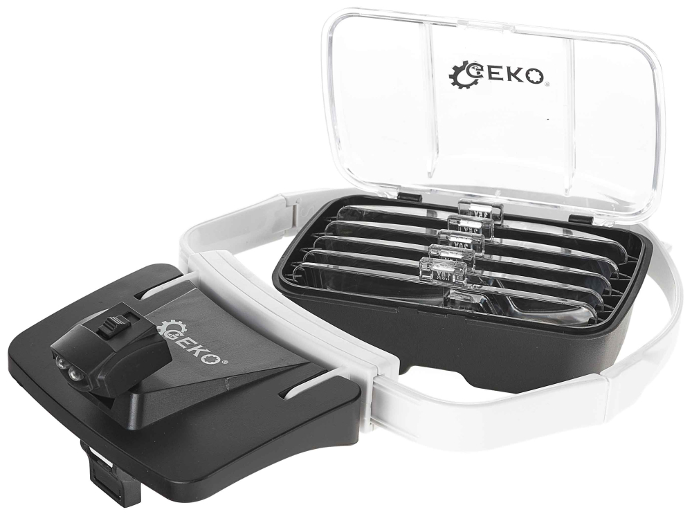 - Sada lúp s držiakom na hlavu a LED osvetlením, GEKO