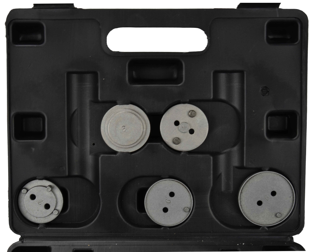 Profesionálna 18-dielna súprava na vytláčanie brzdových piestov, nevyhnutná pri oprave vozidiel vybavených kotúčovými brzdami.Sada je vhodná na použitie pre väčšinu vozidiel na trhu: Audi, Ford, Fiat, Honda, Jaguar, BMW, Mercedes-Benz, Mitsubishi, Nissan, Toyota, Renault, Volvo, Citroën, Opel, Saab, GM a VW.