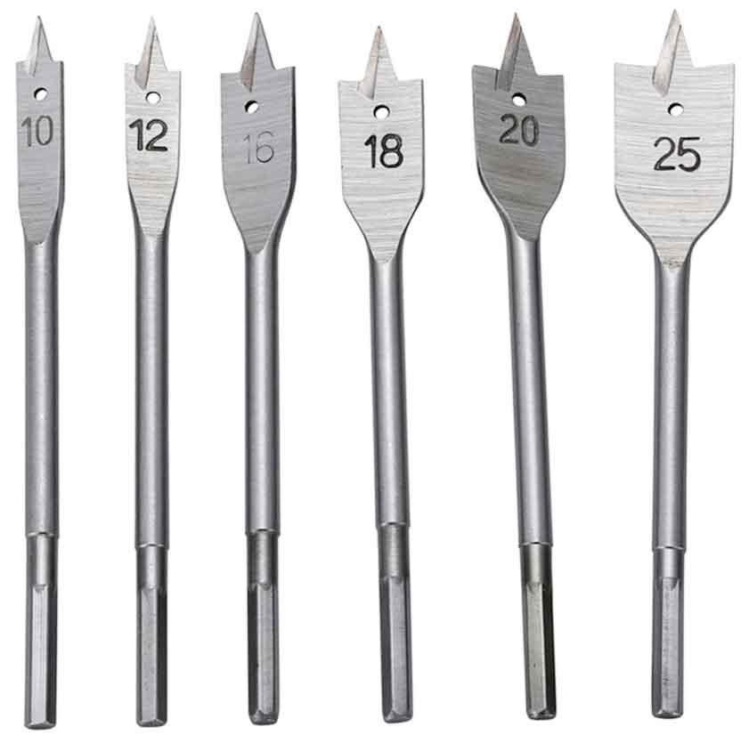 Sada 6 vrtákov do dreva. Vrtáky s priemerom 10, 12, 16, 18, 20, 25 mm.Použitie: hrubovanie mäkkého dreva (napr. smrek, jedľa, borovica), vŕtanie do drevotrieskových dosiek, preglejky a iných materiálov na báze dreva.