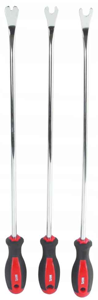 Sťahováky na čalúnenie uľahčujú vyberanie čalúnenia, vnútorných krytov a zatváracích špendlíkov. Špeciálny tvar hrotov zabraňuje akémukoľvek poškodeniu. Chapadla majú gumené rukoväte.SET OBSAHUJE: