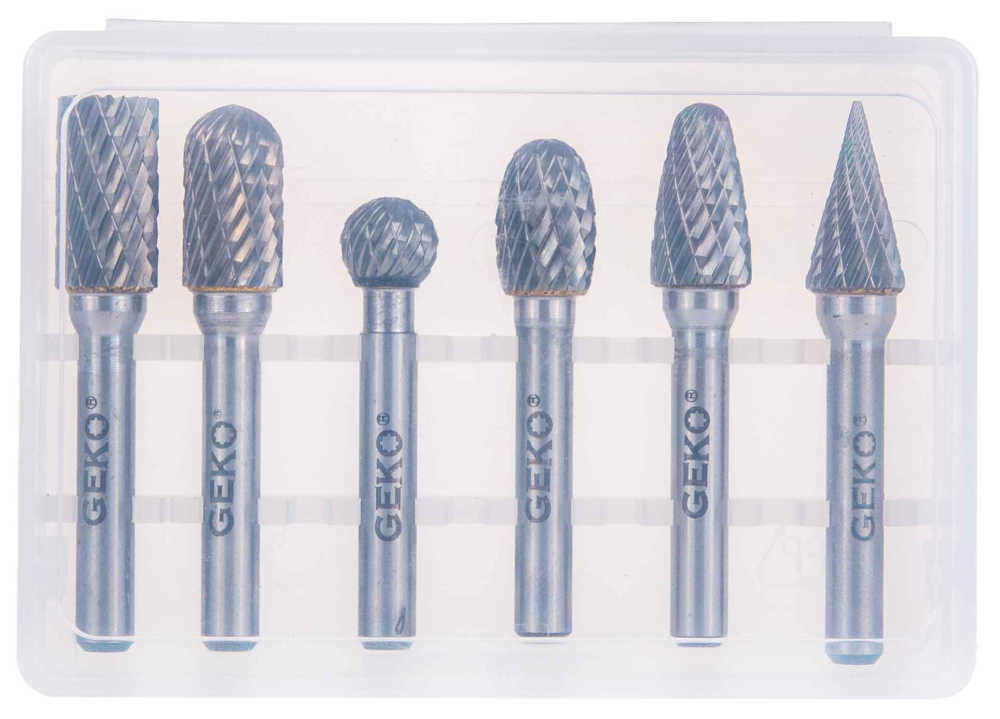 - Sada technických fréz na stopke, 6-dielna z karbidu wolfrámu, priemer stopky 6 mm, GEKO