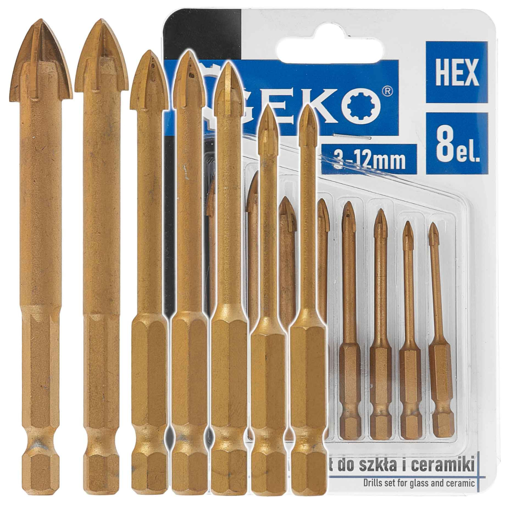 Sada vrtákov do skla a keramiky, 7-dielna, 3-12 mm, 4-brité, stopka 6 HRAN, GEKO