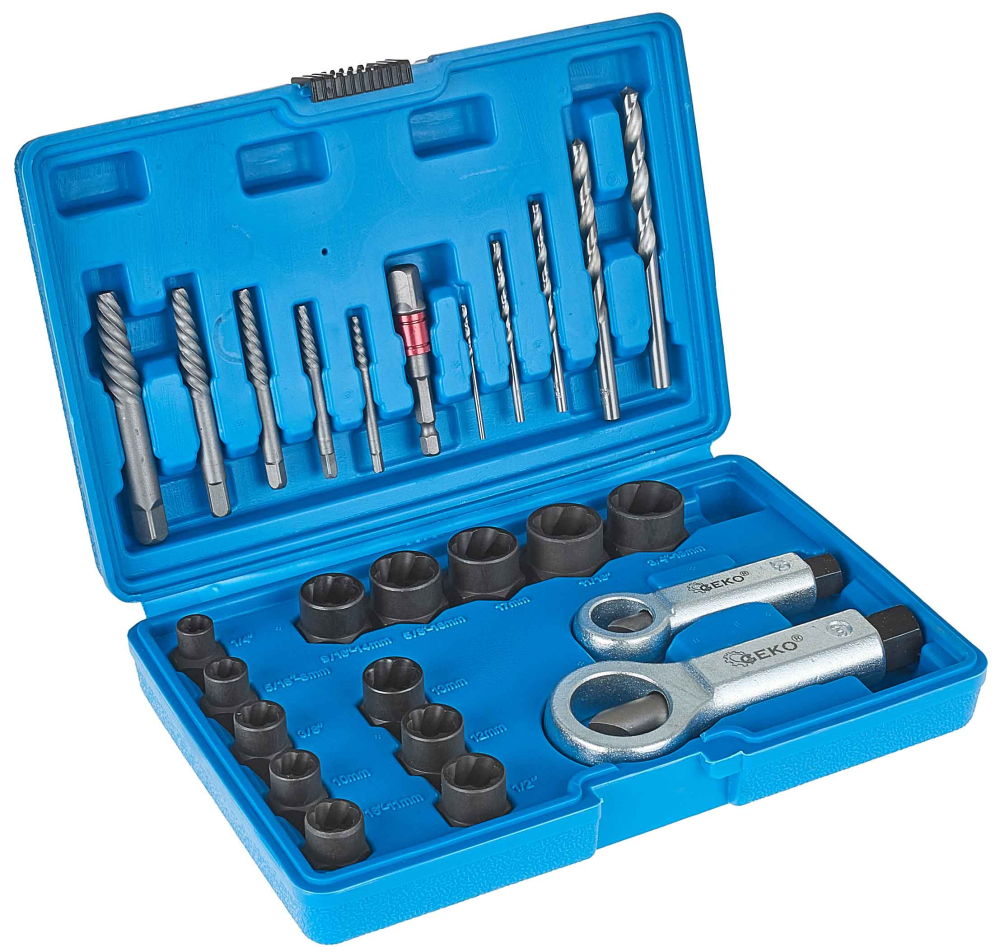- Sada vyťahovačov zalomených skrutiek a poškodených matíc, 26-dielna, GEKO