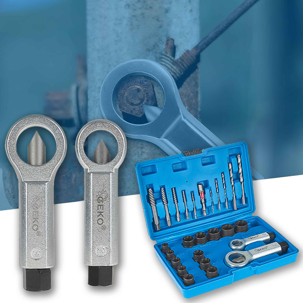 Sada vyťahovačov zalomených skrutiek a poškodených matíc, 26-dielna, GEKO