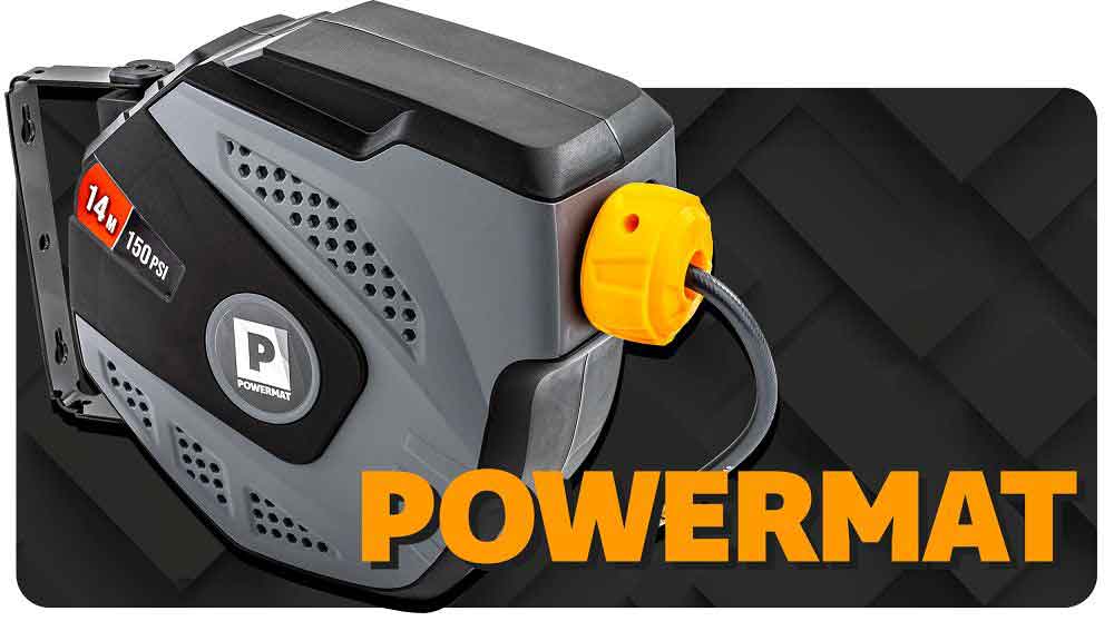 Samonavíjací závesný bubon s hadicou na vzduch, 6,5x10 mm, dĺžka 14 m, POWERMAT