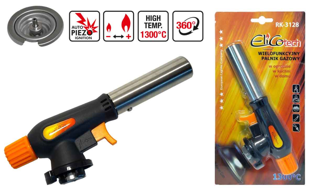 - Spájkovacia lampa na plynovú kartušu s tlačidlom na piezo zapaľovanie, otočný uzáver,ELICO