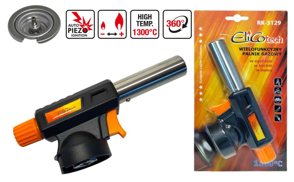 - Spájkovacia lampa na plynovú kartušu s tlačidlom na piezo zapaľovanie, otočný uzáver,ELICO