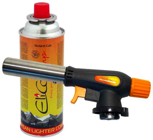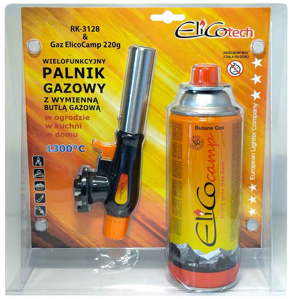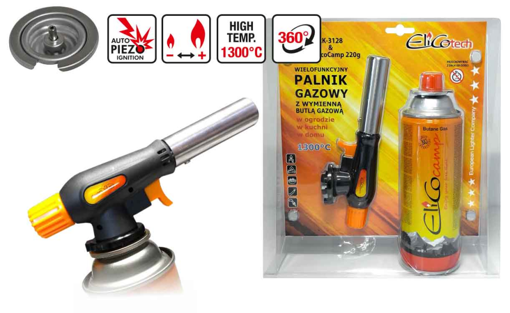 Spájkovacia lampa s piezo zapaľovačom a kartušou 220g, otočný uzáver, ELICO