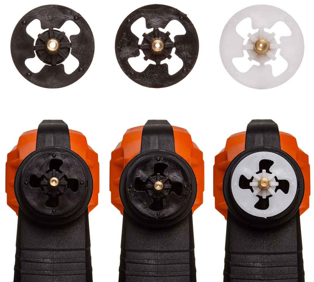 3 trysky (vo veľkostiach: 1,0; 1,8; 2,5)