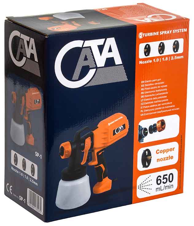 - Striekacia maliarska pištoľ, 550 W, nádobka 650 ml, tryska 1,0, 1,8 a 2,5 mm, CATA