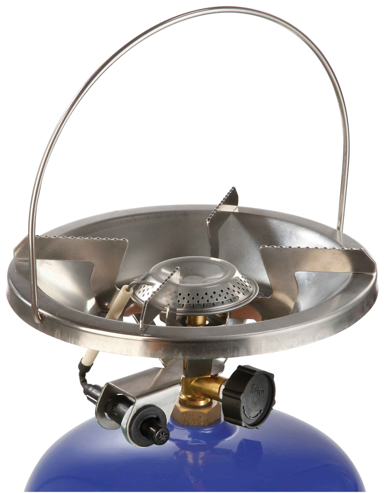 Jednoplatničkový vysokotlakový varič pre priame pripojenie k 2 kg propán-butánovej fľaši.