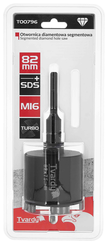 - Vrták diamantový korunkový so stredovým vrtákom, priemer 82 mm, upínanie SDS+, M16, TVARDY