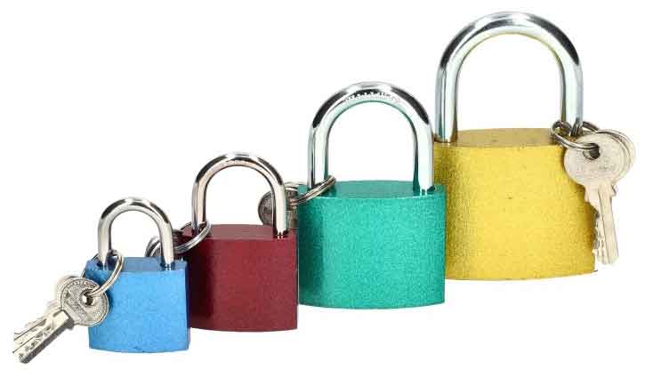 - Zámok visiaci liatinový, farebný AB-75 mm, XL-TOOLS