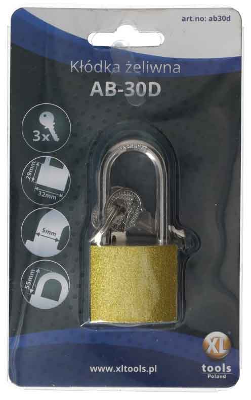 Zámok visiaci liatinový, predĺžený uzáver, AB-30 mm, XL-TOOLS