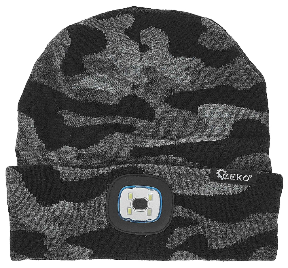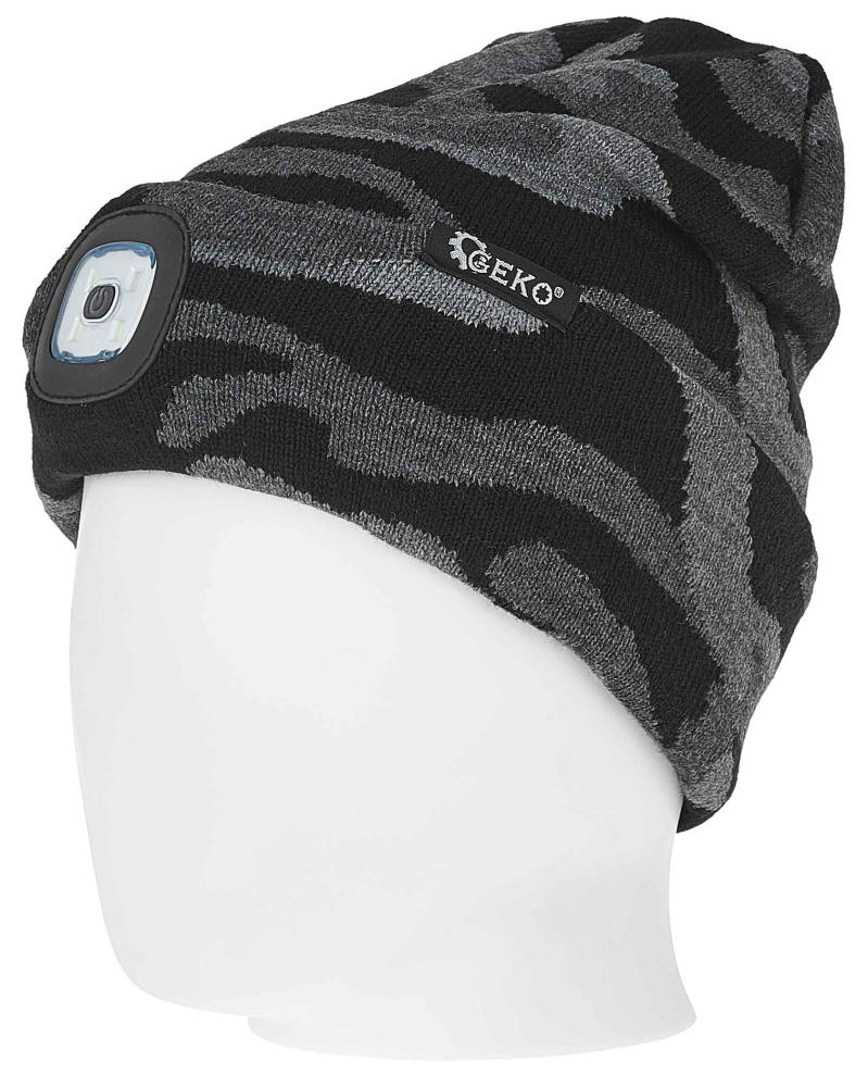 Zimná čiapka s LED svetidlom, čierno sivá, GEKO