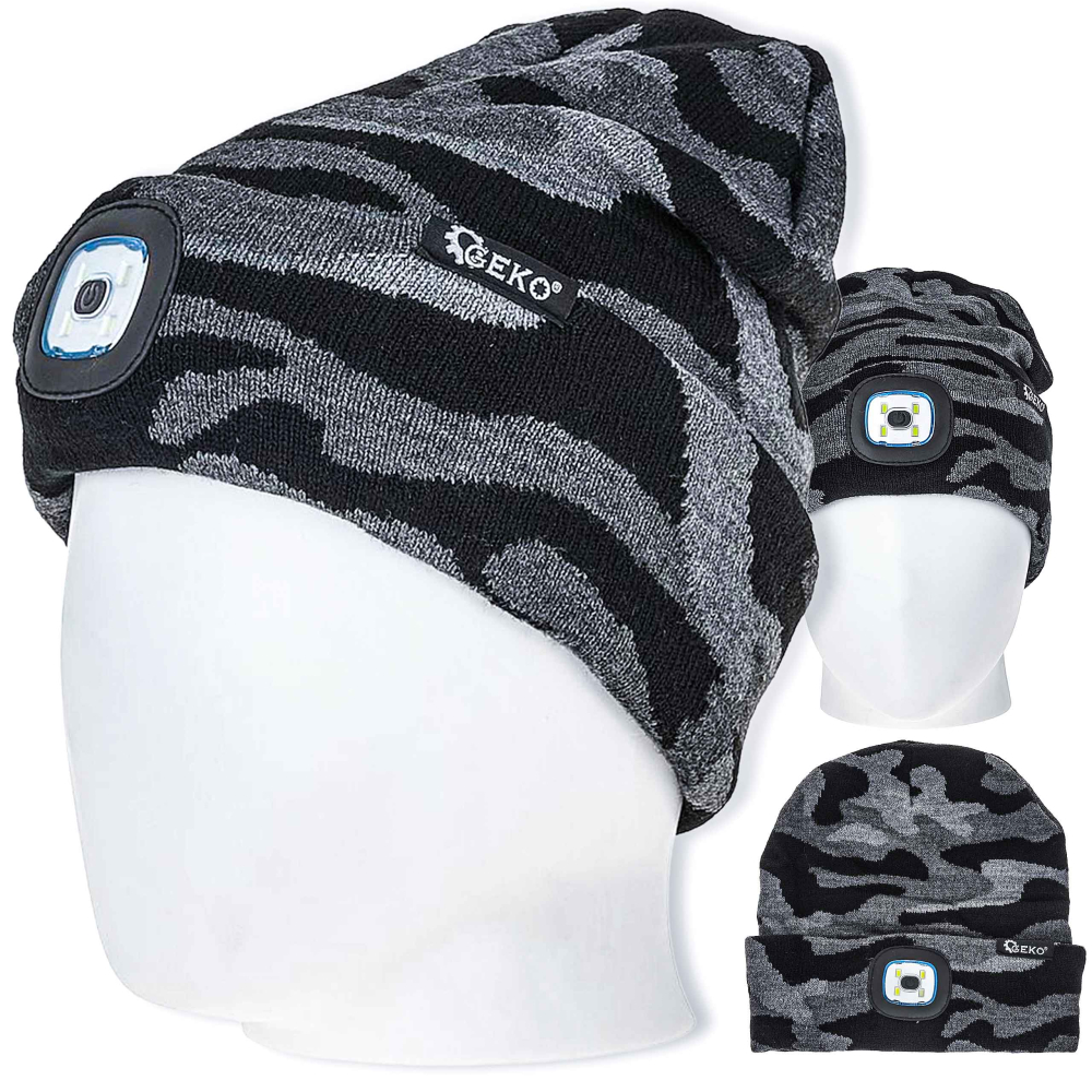- Zimná čiapka s LED svetidlom, čierno sivá, GEKO