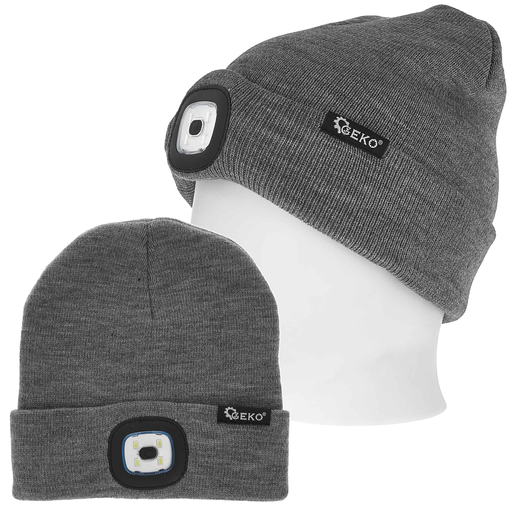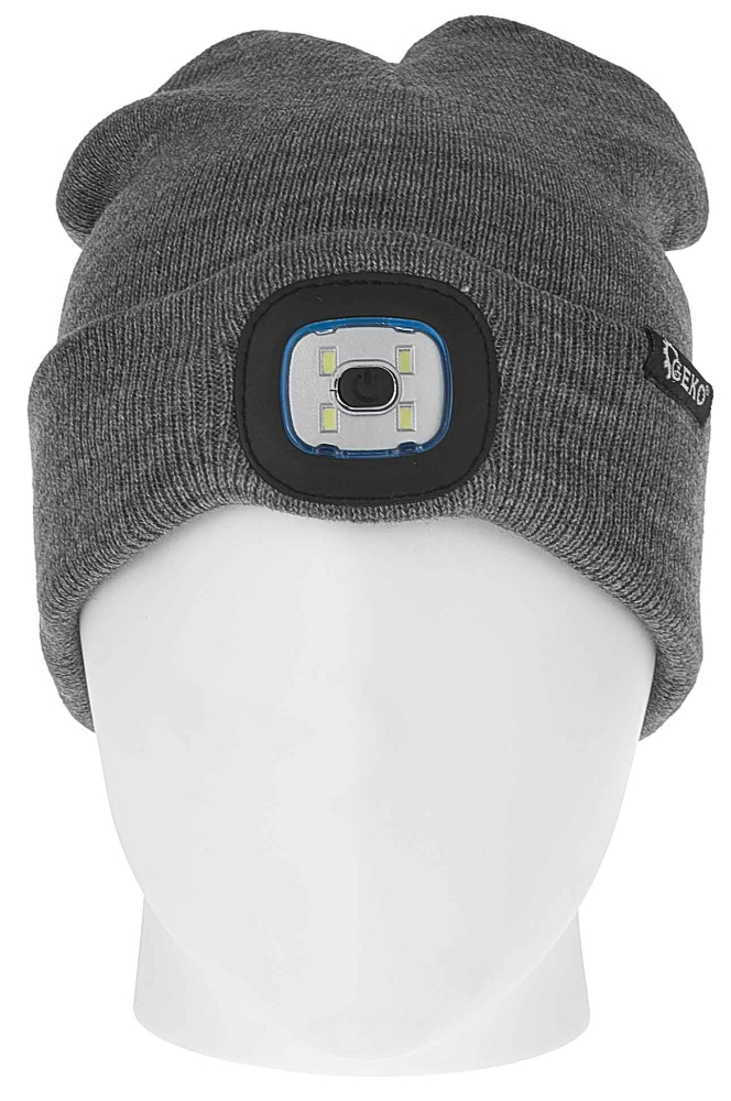 Zimná čiapka s LED svetidlom, sivá, GEKO