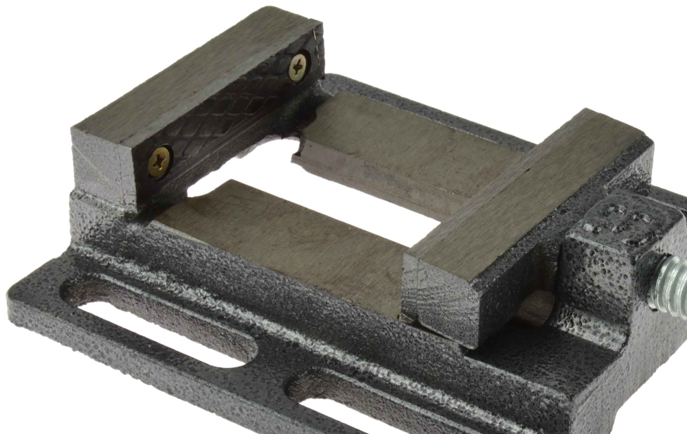 Strojný zverák s drážkovanou základňou pre jednoduchú montáž a umiestnenie zveráka. Vyrobené z liatej ocele s odolnými oceľovými čeľusťami s priečnymi drážkami pre lepšie uchopenie obrábaného predmetu.4 pozdĺžne upevňovacie otvory